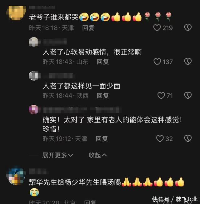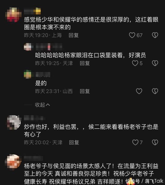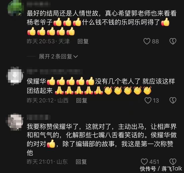 不少网友疯狂点赞评论,有网友说:“相声界的前辈情谊果然深厚,侯耀华还能亲自上门,看到杨少华哭成这样,太感人了!”也有人提出质疑:“这会不会是一场‘剧本化和解’,为了吸引热度炒作?”