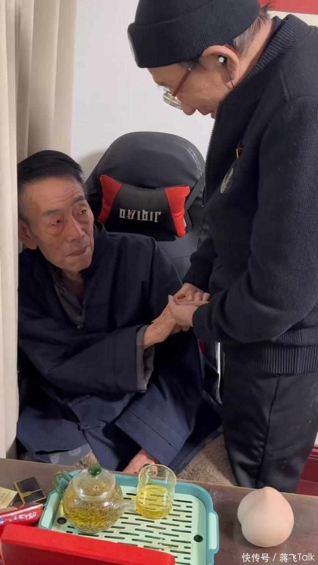 杨议发了一段视频。78岁的侯耀华特意从北京跑到天津探望93岁的杨少华。刚一见面,杨少华愣了一下,紧接着就像孩子一样哭了。侯耀华一边拍着老友的背,一边安慰道:“我掐着点来的,就怕您睡着。”